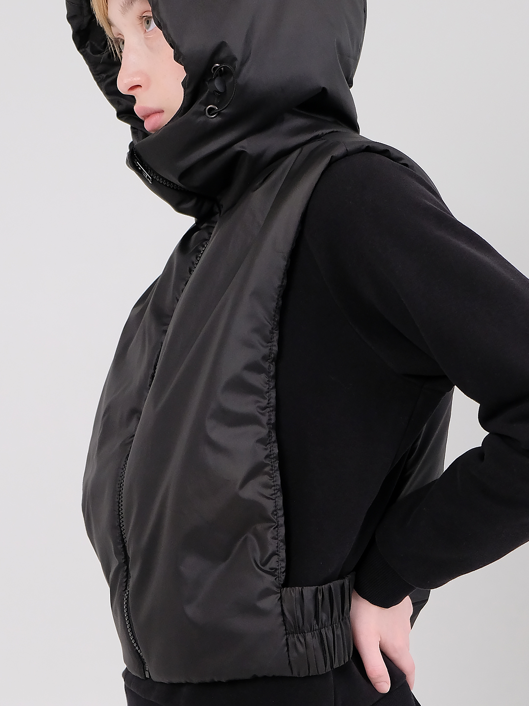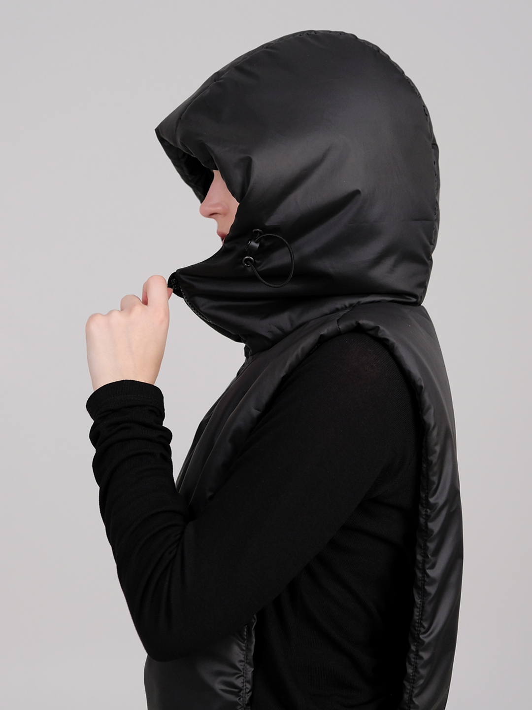 Утепленный жилет с капюшоном заменит шарф, шапку и жилет одновременно.